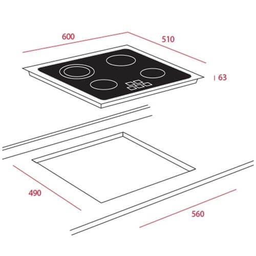3 vùng nấu: 1 vùng 145mm, 1 vùng 180mm, 1 vùng 180/230mm