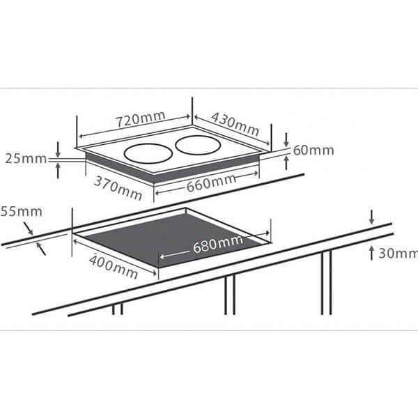 Bếp Điện Từ Chefs EH-MIX321 kích thước 70cm với thiết kế hình chữ nhật, gồm 2 bếp kết hợp điện và từ đun nấu tiện lợi