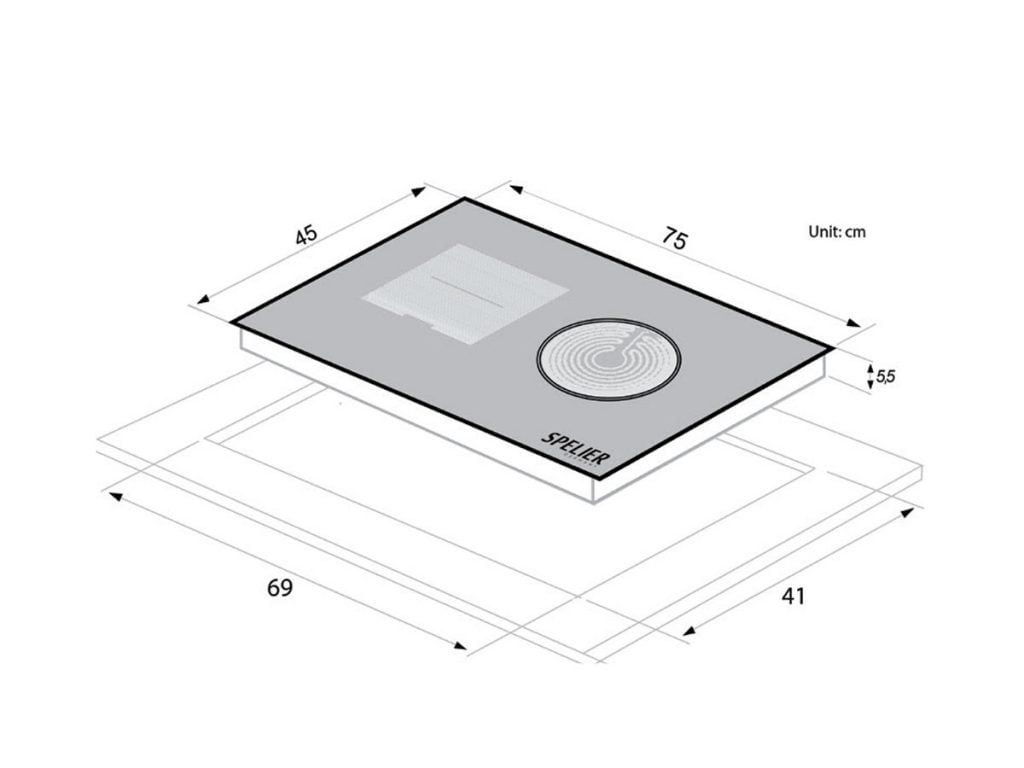 • Điện áp 220-240V/ 50-60Hz• Kích thước bếp (D x R x C): 75 x 45 x 5,5 cm
