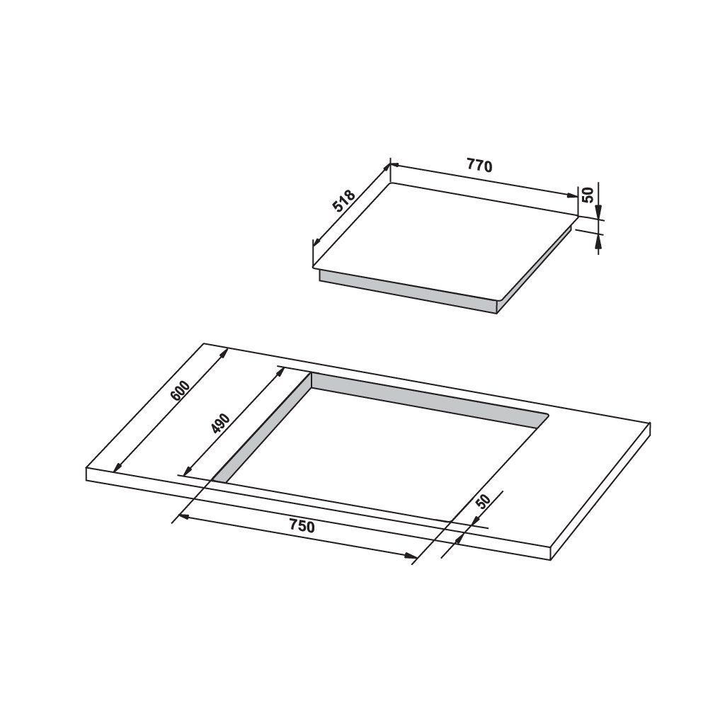 Kích thước lắp đặt: 750R x 490S mm
