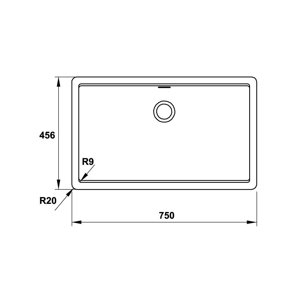 >> Kích thước chậu: 750D x 456R mm