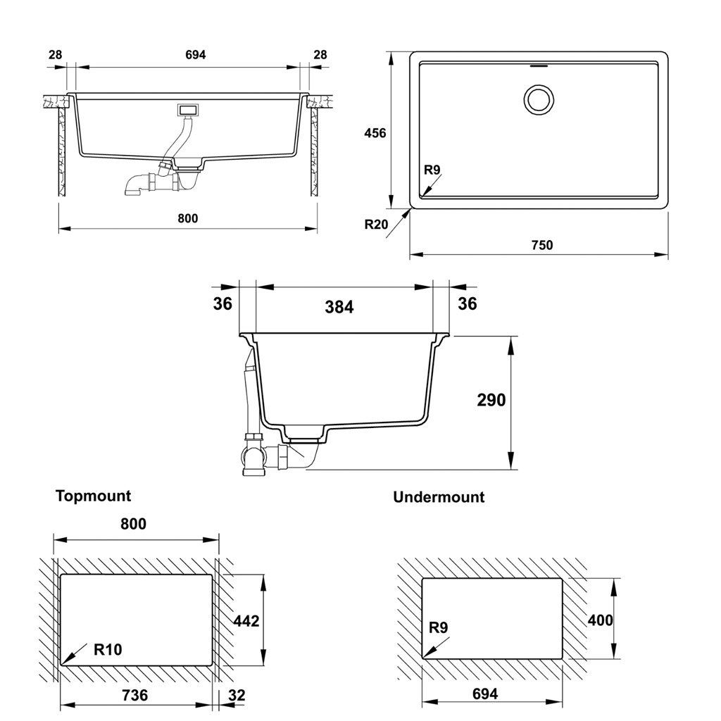 - Lắp nổi 736D x 442R mm