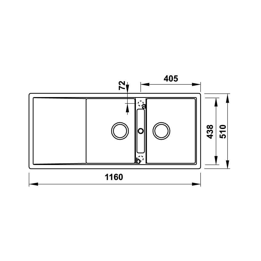 +Kích thước cắt đá âm: 1144D x 494R mm