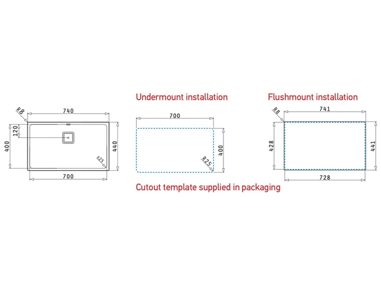 Kích thước lòng chậu: 700 x 400 x 200 mm