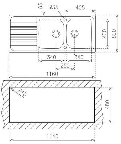 Kích thước hố chậu (D x R): 340 x 400 mm