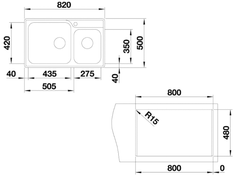 Kích thước mỗi bồn: 435D x 420R/ 275D x 350R mm.