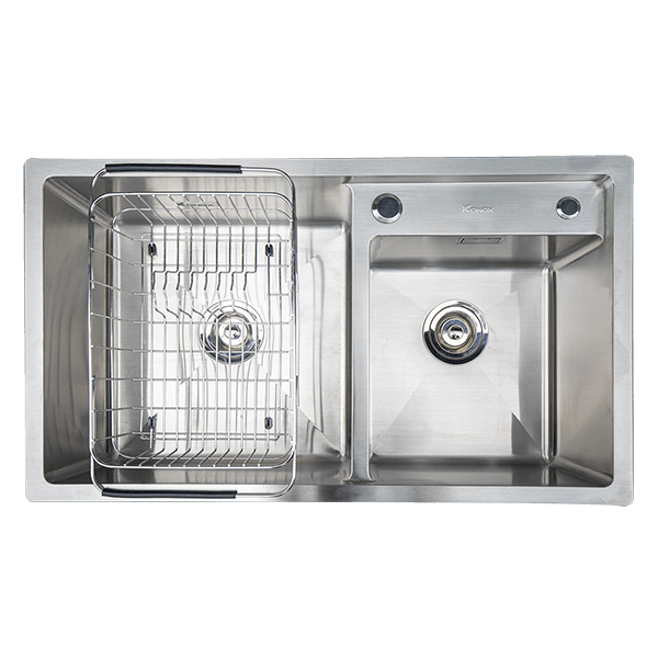 Sản phẩm thiết kế sâu lòng, nười dùng linh hoạt trong việc lựa chọn hố chậu theo nhu cầu sử dụng, giúp tiết kiệm nước với thiết kế 2 hố chậu lệch.