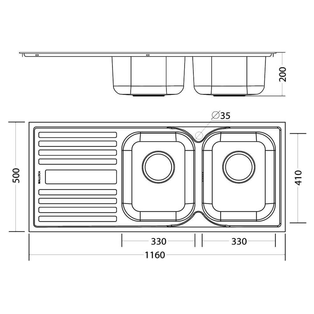 Kích thước: Dài 1160, Rộng 500, Cao 200mm