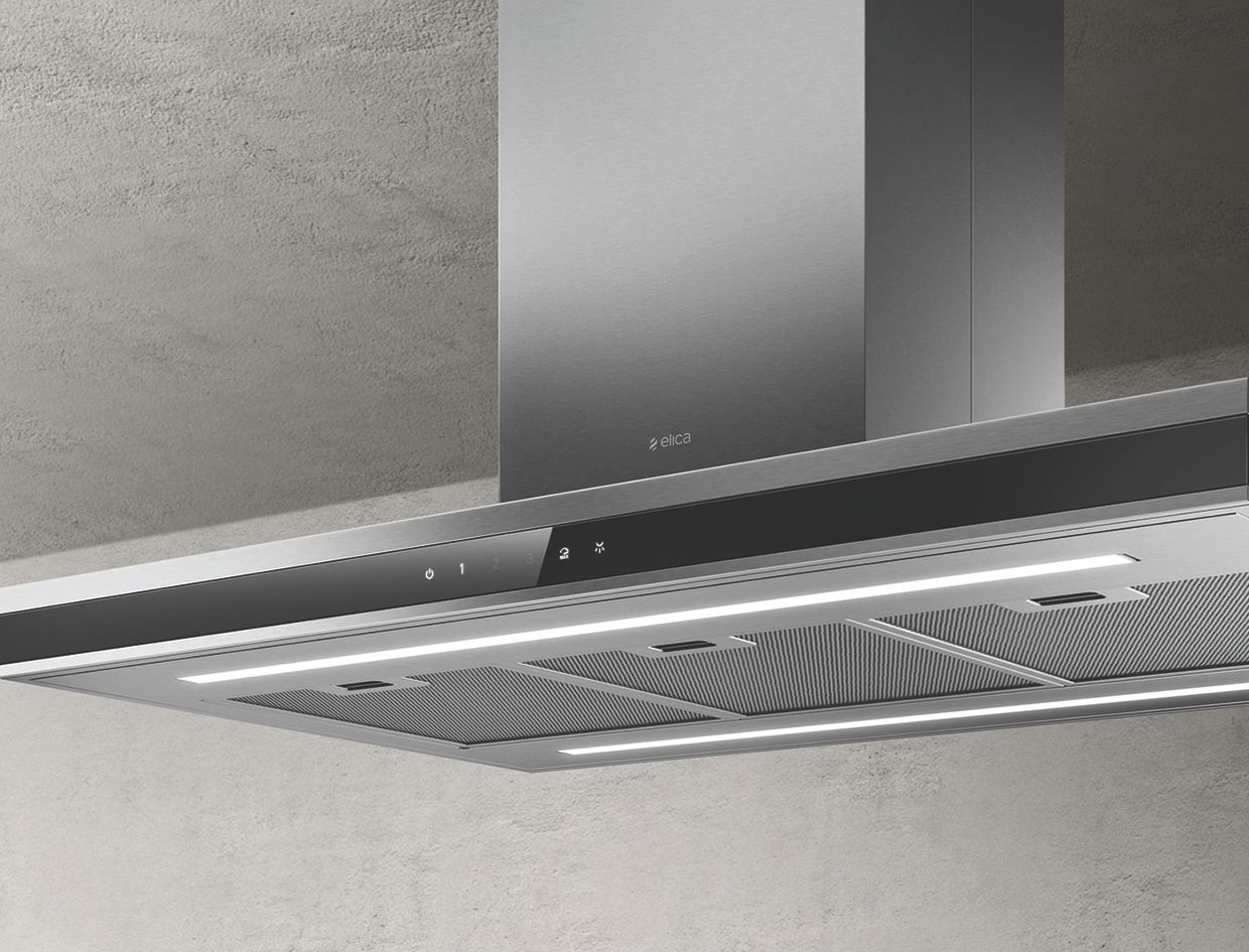 Máy hút mùi đảo Adéle được trang bị một mặt kính đen với một khung nhôm bao ngoài tạo ra vẻ đẹp lịch lãm sang trọng cho thiết bị. Sự kết hợp chất liệu này biến máy hút mùi Adele thành một lựa chọn lý tưởng cho mọi gian bếp vì khách hàng có thể phối kiểu Adéle với các thiết bị khác.