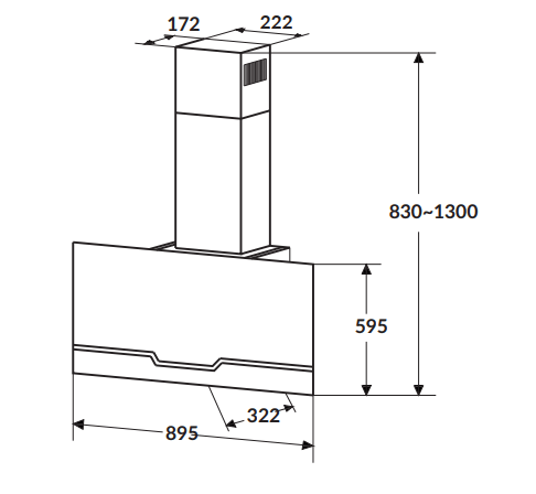 Kích thước (DxRxC): 895x320x830/1300 mm