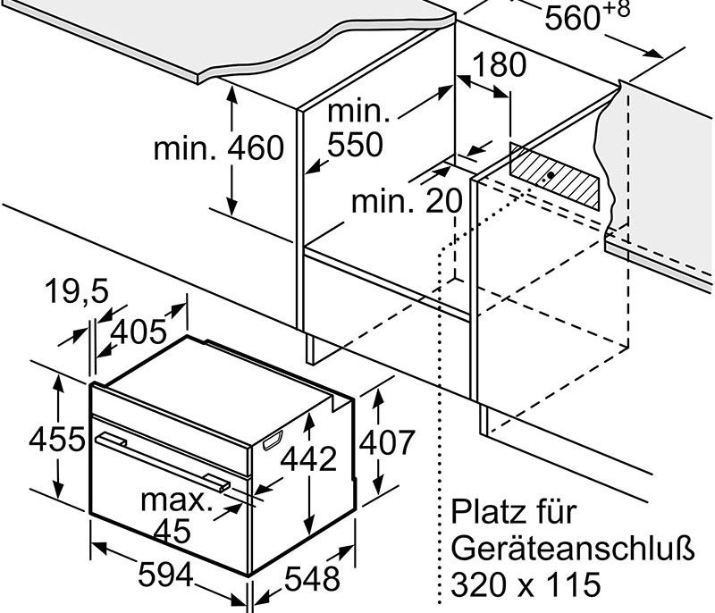 Kích thước lò nướng (CXRxS): 455 x 594 x 548 mm