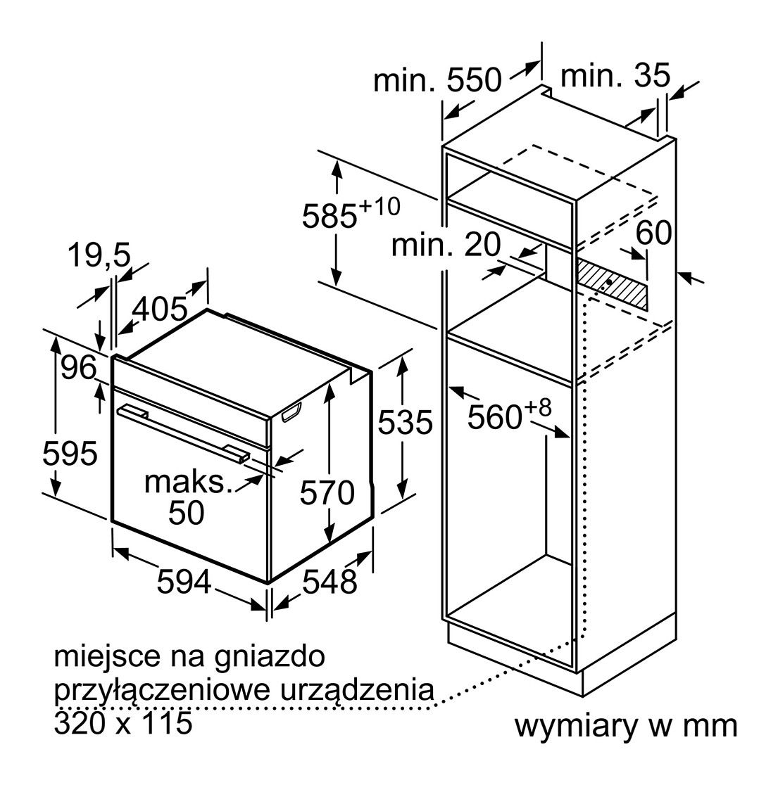 + Kích thước lò nướng (CXRxS): 595 mm x 594 mm x 548 mm