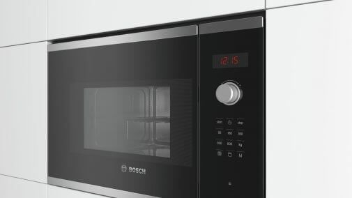 Thiết kế lắp đặt sóng âm tủ giúp cho lò vi sóng Bosch BFL523MS0B trở nên sang trọng và hiện đại cho căn bếp.