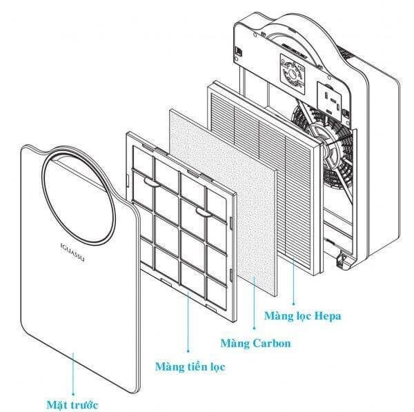 Bước 1: Bộ lọc trước loại bỏ các loại bụi lớn nhìn thấy bằng mắt thường như lông động vật, bụi từ chăn màn, xơ vải v v... có thể vệ sinh màng lọc theo chu kỳ