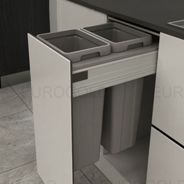 Thùng rác âm tủ ray hộp giảm chấn cao cấp được thiết kế 2 thùng rác linh hoạt và chiều cao tối đa giúp tích trữ được lượng rác rất lớn mà không hề có cảm giác khó chịu khi kết hợp với ray hộp giảm chấn