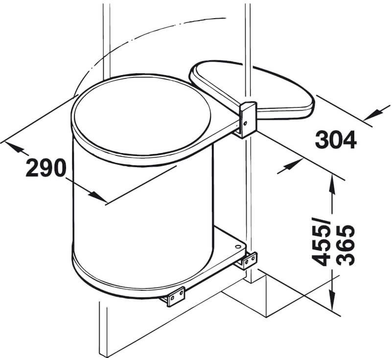 Hệ thống thùng rác đơn được gắn vào cánh tủ cửa bản lề