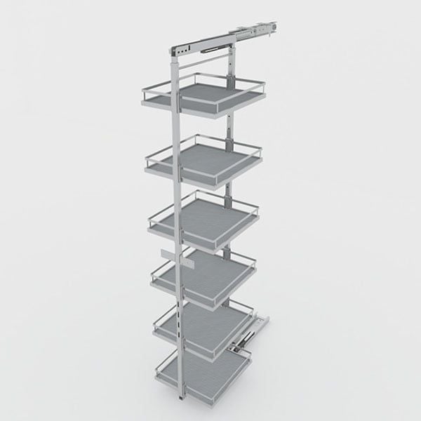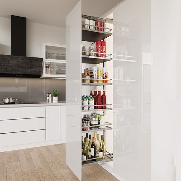 - Hô biến những chiếc tủ cao trong bếp thành tủ đồ khô đa năng với các hệ phụ kiện Kosmo: Thiết kế đa dạng với nhiều khay sức chứa lớn để bạn tha hồ lưu trữ mọi thứ từ thực phẩm đóng hộp, ngũ cốc, dầu ăn đến cả dụng cụ ăn uống…