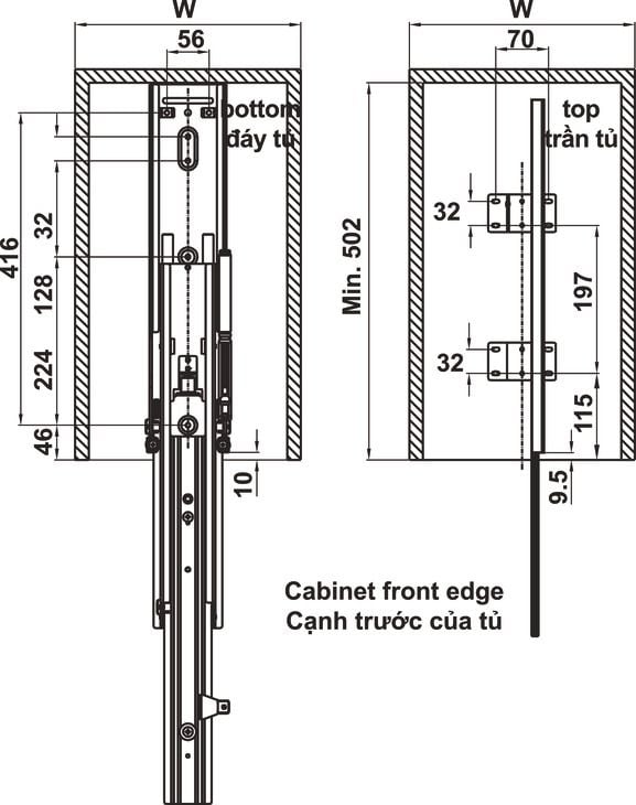 Chiều cao: 1970 – 2,270 mm