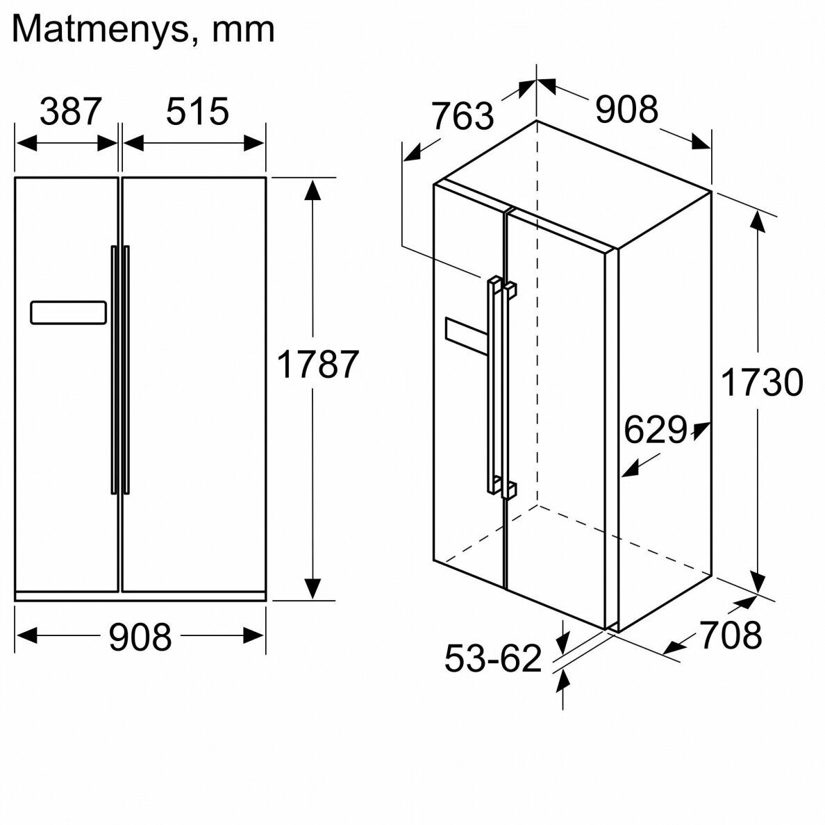 + Kích thước tủ lạnh (CXRxS): 178.7 cm x 90.8 cm x 70.7 cm