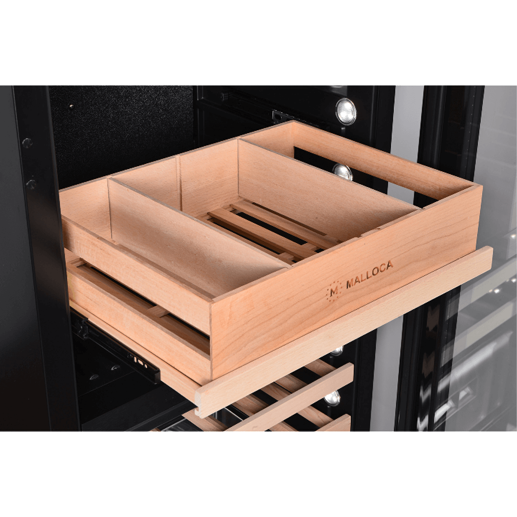 ***Lưu ý: Sức chứa tủ sẽ thay đổi tùy thuộc vào kích thước chai rượu, có thể tháo bớt kệ gỗ và xếp chồng các chai lên nhau để phù hợp với những chai có kích thước lớn.