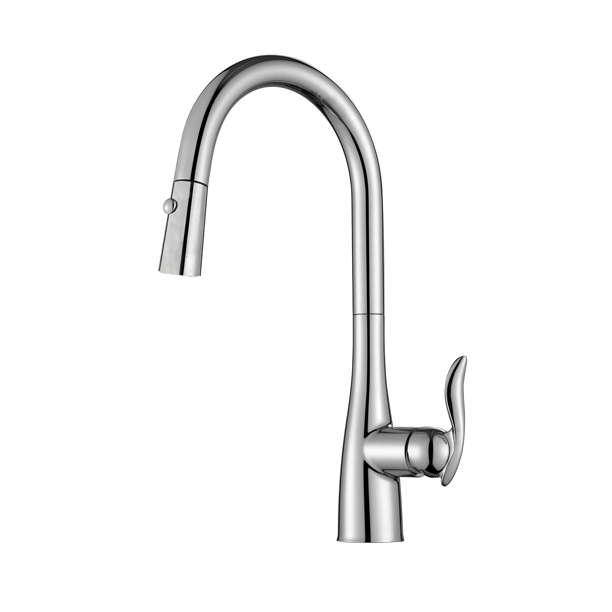 Thiết kế tay vòi cách điệu mềm mại, vị trí nằm ngang giúp việc thao tác trở nên linh hoạt hơn và tối ưu được không gian làm việc trên bàn bếp.